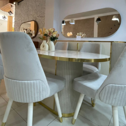 • Table avec 6 chaises : élégance et solidité pour des repas conviviaux.